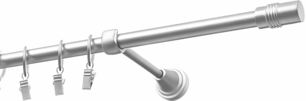 Délka tyče: 1,6 m, konzole : 2 ks, koncovky: 2 ks, kroužek s žabkou: 12 ks, provedení: stříbrná matná barva.