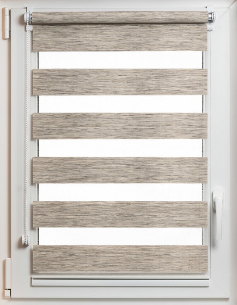 Rolety Den a Noc jsou první rolety s možností plynulé regulace světla v interiéru. Díky složení rolety ze dvou různě propustných pásů lze jednoduše regulovat světlo v interiéru pomocí řetízku.