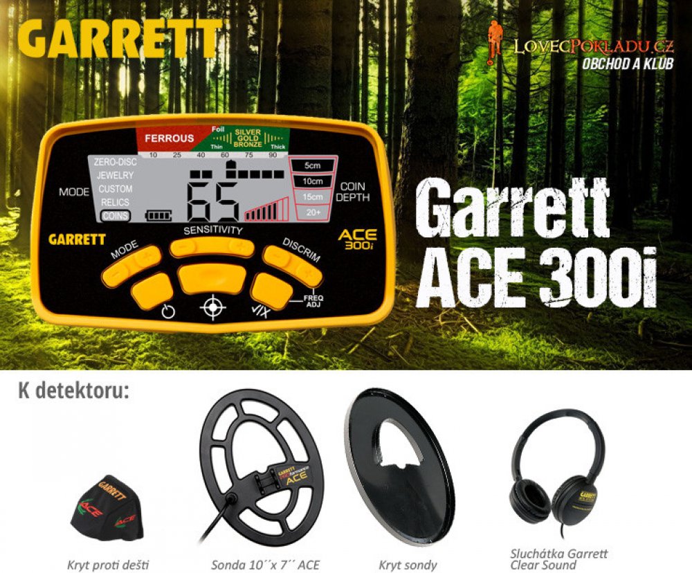 Garrett Ace 300i je nejnovější model roku 2016. Oproti základnímu modelu Ace 200i disponuje větší cívkou 18 x 25cm (7" x 10") PROformance™, vyšší pracovní frekvenci a funkcí Pin-Point pro snažší dohledání předmětu.