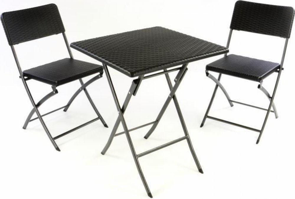 Elegantní zahradní komplet z plastu, zpracovaný v elegantním černém ratanovém designu. Jednoduše rozložitelný a všestranně použitelný na balkoně, terase nebo na zahradě. Příjemně strávenému času na čerstvém vzduchu nestojí nic víc v cestě. Samozřejmě můžete komplet použít i ve svém domově. Nohy jsou opatřeny gumovými záslepkami. Stabilní a nenáročné na údržbu. V případě, že nábytek zrovna nepoužív...