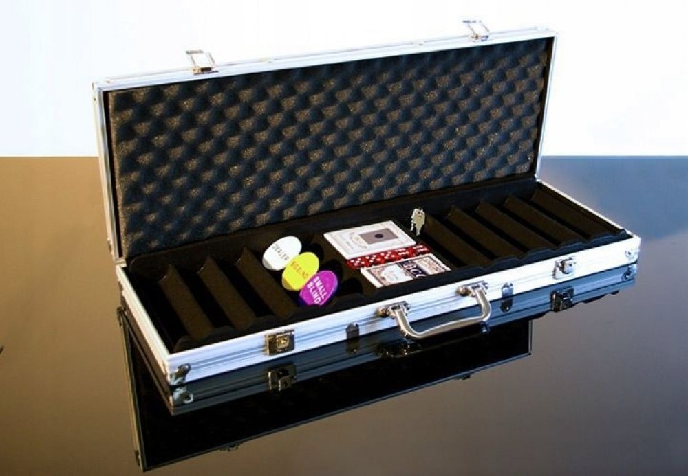 Elegantní a robustní hliníkový kufřík se 2 zámky a zásobníkem na žetony nabízí pohodlný prostor pro všechny hrací pomůcky a umožňuje bezpečnou přepravu.