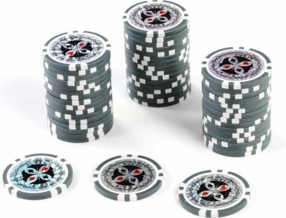 Žetony se snadno drží a vaše sázka nebo výhra se snáze skládá jednou rukou. Žetony jsou také velmi dobré pro triky s žetony. Vysoce reflexní mince má kovové jádro o váze žetonu 12 gramů, což odpovídá váze běžných žetonů v kasinech. Díky nápadným barvám a odpovídajícímu označení hodnoty můžete mít přehled o věcech během vzrušující hry pokeru.