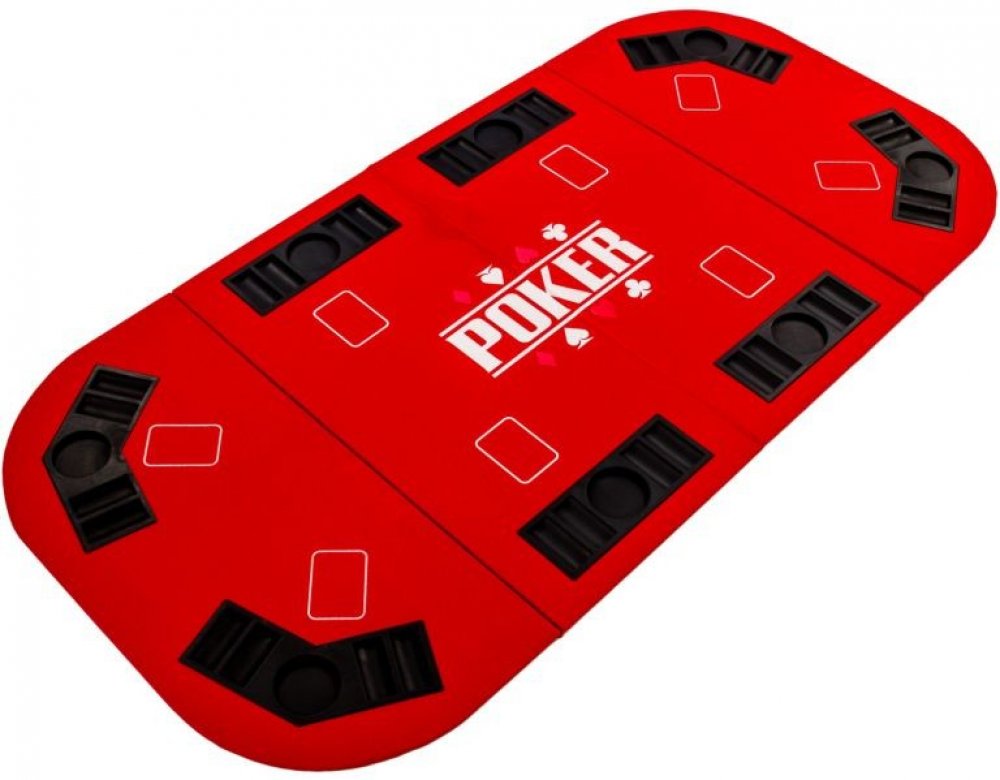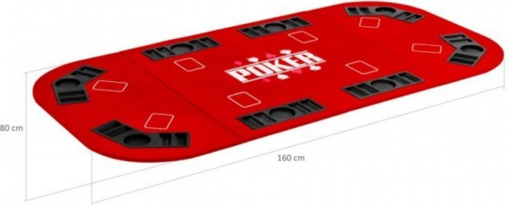 Velká skládací pokerová podložka na hraní Texas Holdem s osmi chip tray. Pokerová podložka je rychle a prostorově úsporně složená.