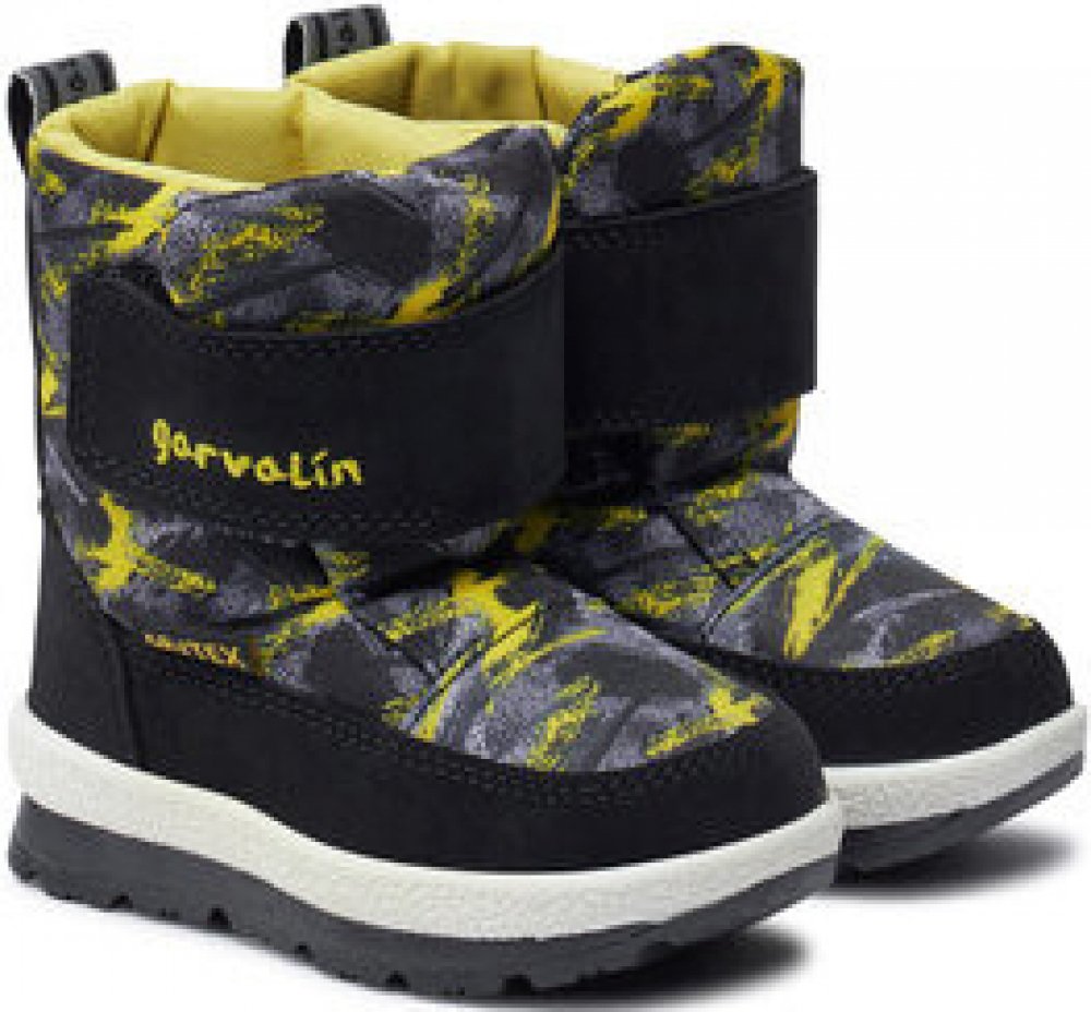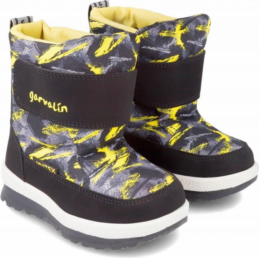 Dětské sněhule z kolekce Garvalin. Zateplený model vyroben z kombinace textilního materiálu a imitace semiše. Model s drážkovanou podrážkou zajišťuje vysokou přilnavost k zemi.