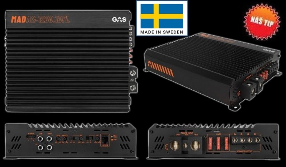 GAS MAD A2-1200.1DFL je 1-kanálový digitální zesilovač do auta s výkonem 1x 480/800/1200 W na 4/2/1 Ohm.