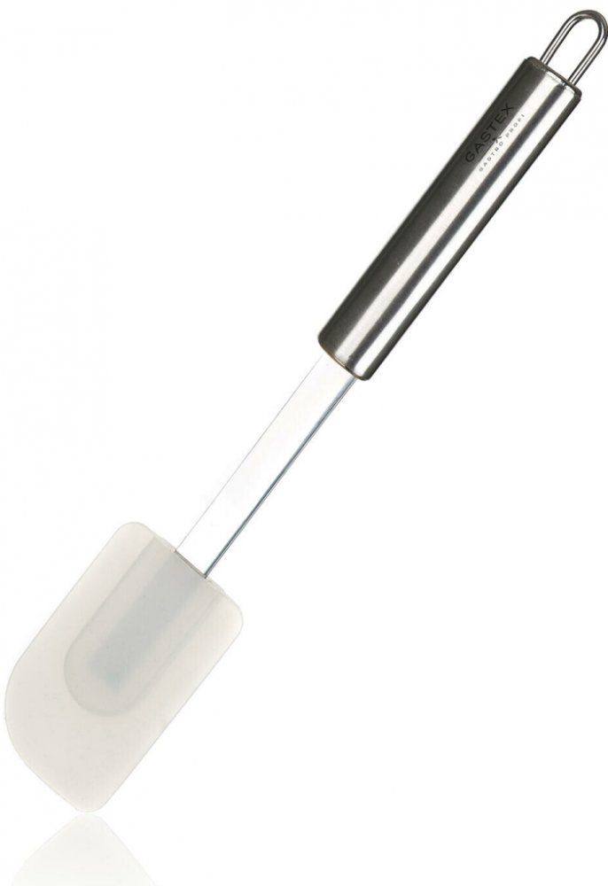 Stěrka AZORA 24 x 5 cm, pomocník pro roztírání a míchání krémů, funkční díl silikon, tělo nerez. Stěrka je určena pro profesionální i domácí použití. Je opatřena praktickým očkem pro možnost zavěšení, snadno se udržuje, lze mýt v myčce na nádobí. Řada kuchyňského náčiní GASTEX splňuje náročné požadavky profesionálů a je vhodná i pro domácí použití. Jednoduchý funkční design zabezpečuje nadčasovost...