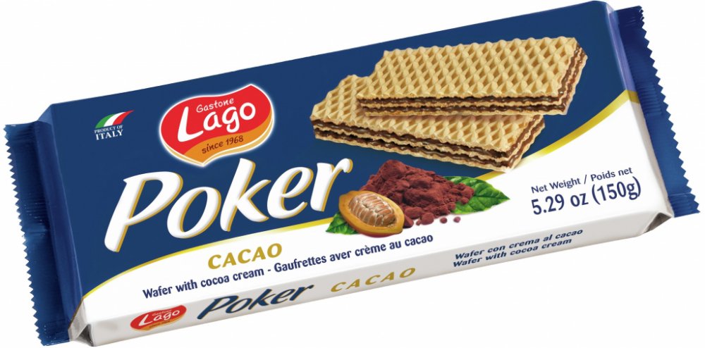 Gastone Lago Poker vafle s příchutí kakaa 150 g – Křupavé vafle s jemným kakaovým krémem