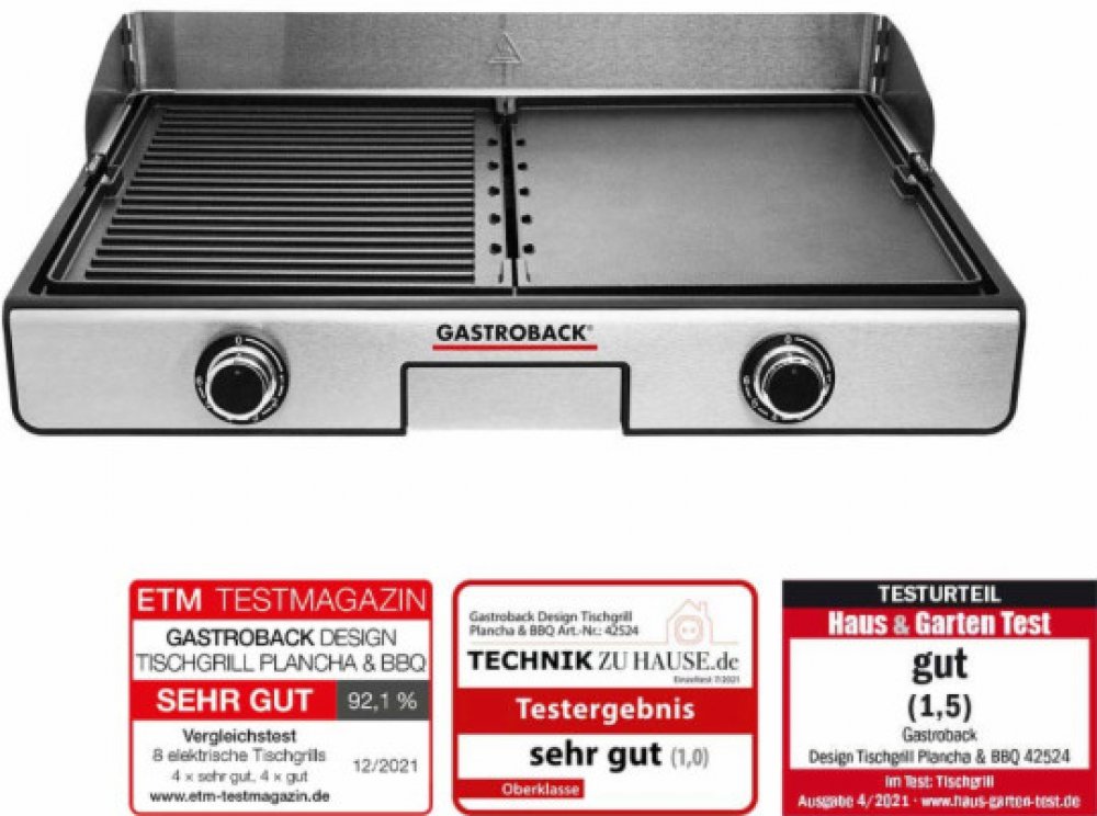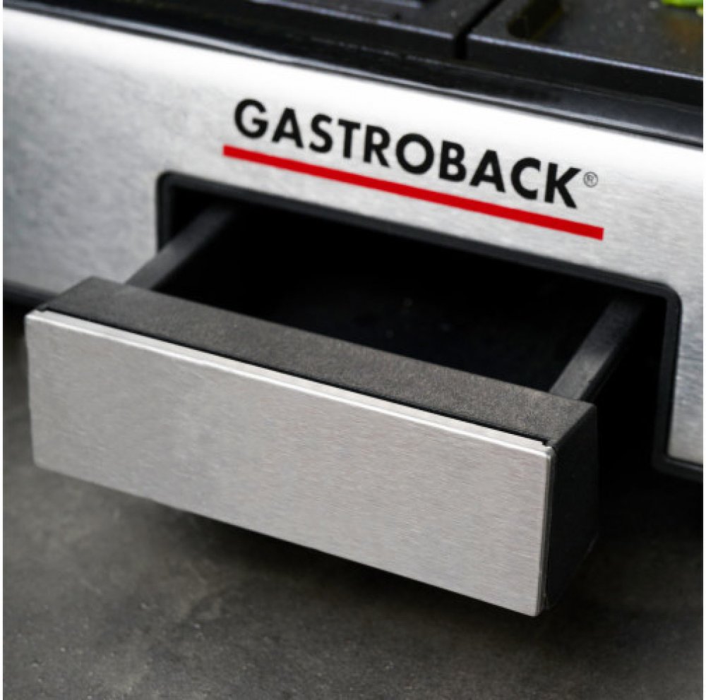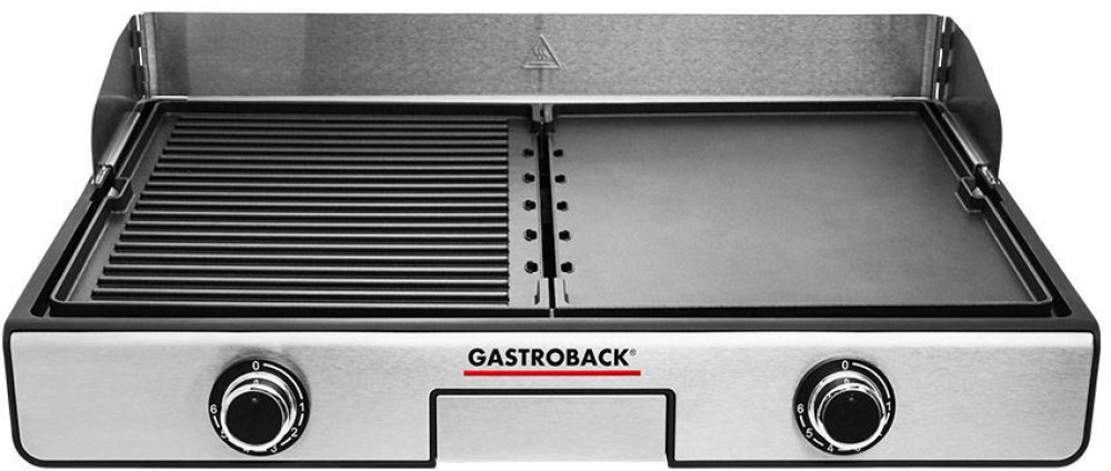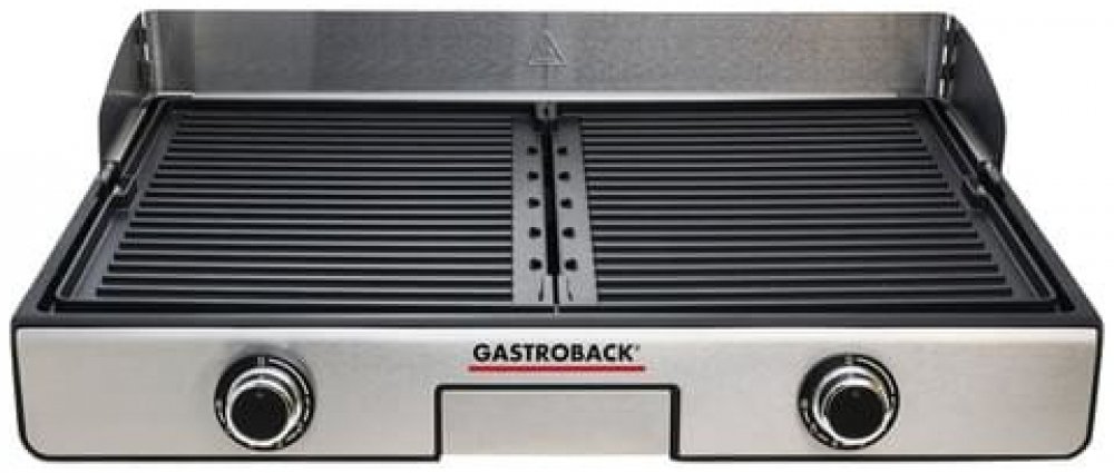 Dvě profesionální grilovací plochy z masivního tlakově litého hliníku, samostatně nastavitelné v 6 úrovních od 90 ° do 240 ° C max. +/- 10 ° C