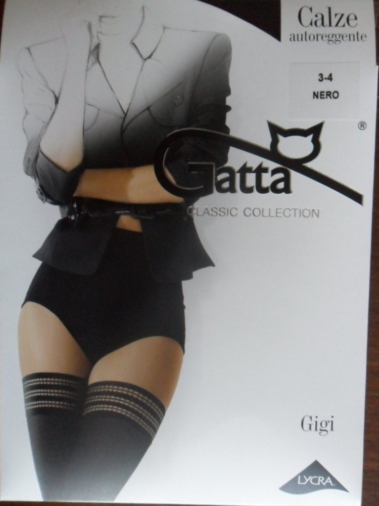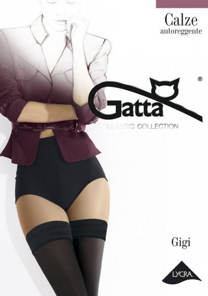 Gigi- samodržící hladké punčochy 60den, s elegantní krajkou a silikonovým páskem,bez zesílené špice. Vyrobené z polyamidu s podílem elastanu