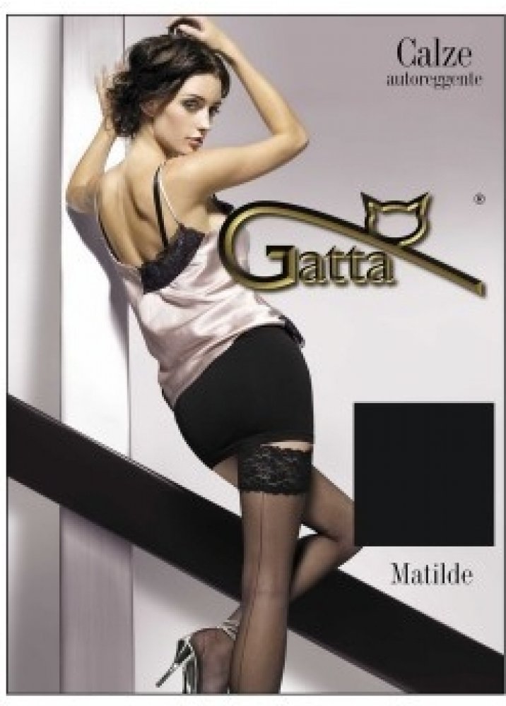 Luxus, smyslnost a ženskost jsou synonymem pro tyto dámské samodržící punčochy. Půvabné punčochové kalhoty značky Gatta Matildes jsou průsvitné a matné, na zadní straně jsou opatřeny ozdobnými švy, na horní části je pak došita úžasná sexy krajka se silikonovým páskem. Vyrobeno z vláken Lycra. Špička i patní části jsou zesíleny.