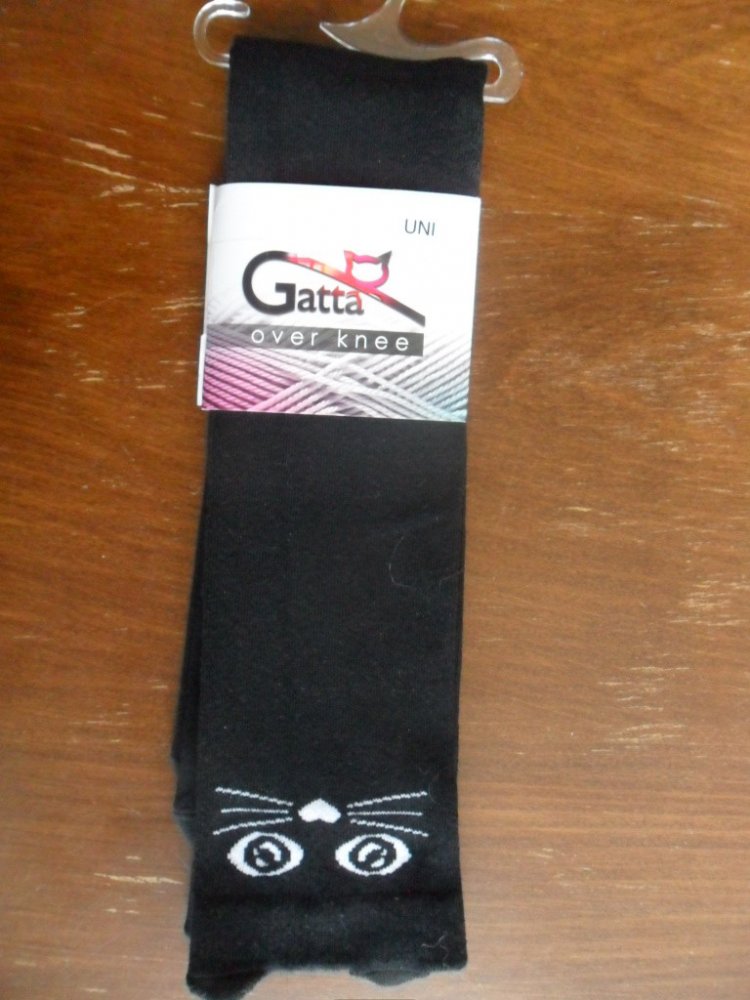 Gatta Nadkolenky bavlněné vzorované s kočkou nero-černé