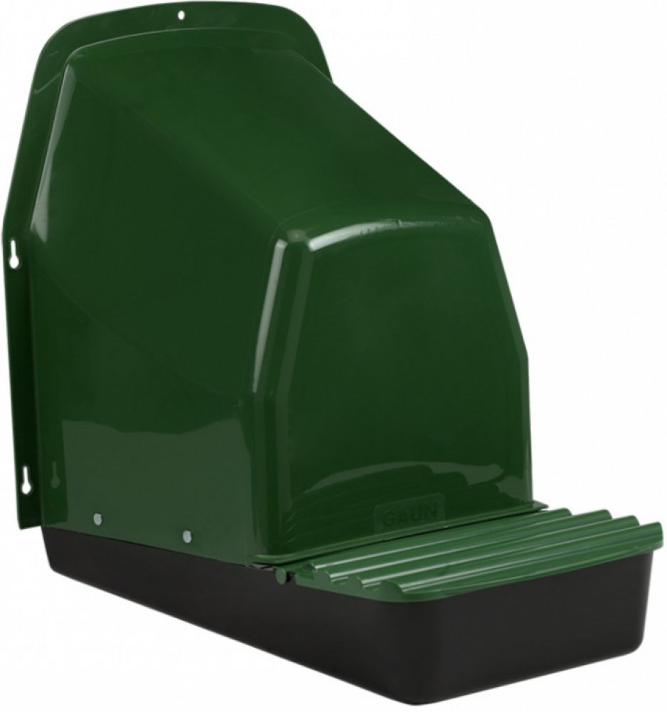 Snáškové hnízdo pro slepice se sběrným košíkem na vejce, venkovní, kapacita až pro 5 nosnic na jednu kukaň, dno hnízda je spádované, vejce se samo odkutálí do košíku s kapacitou až na 10 vajec, vyrobené z plastu, barva zelená. Jednoduché připevnění z vnější části kurníku, velice snadná údržba čistoty, rozměry 44cm délka (28cm bez košíku) x 37cm šířka x 50 cm výška.