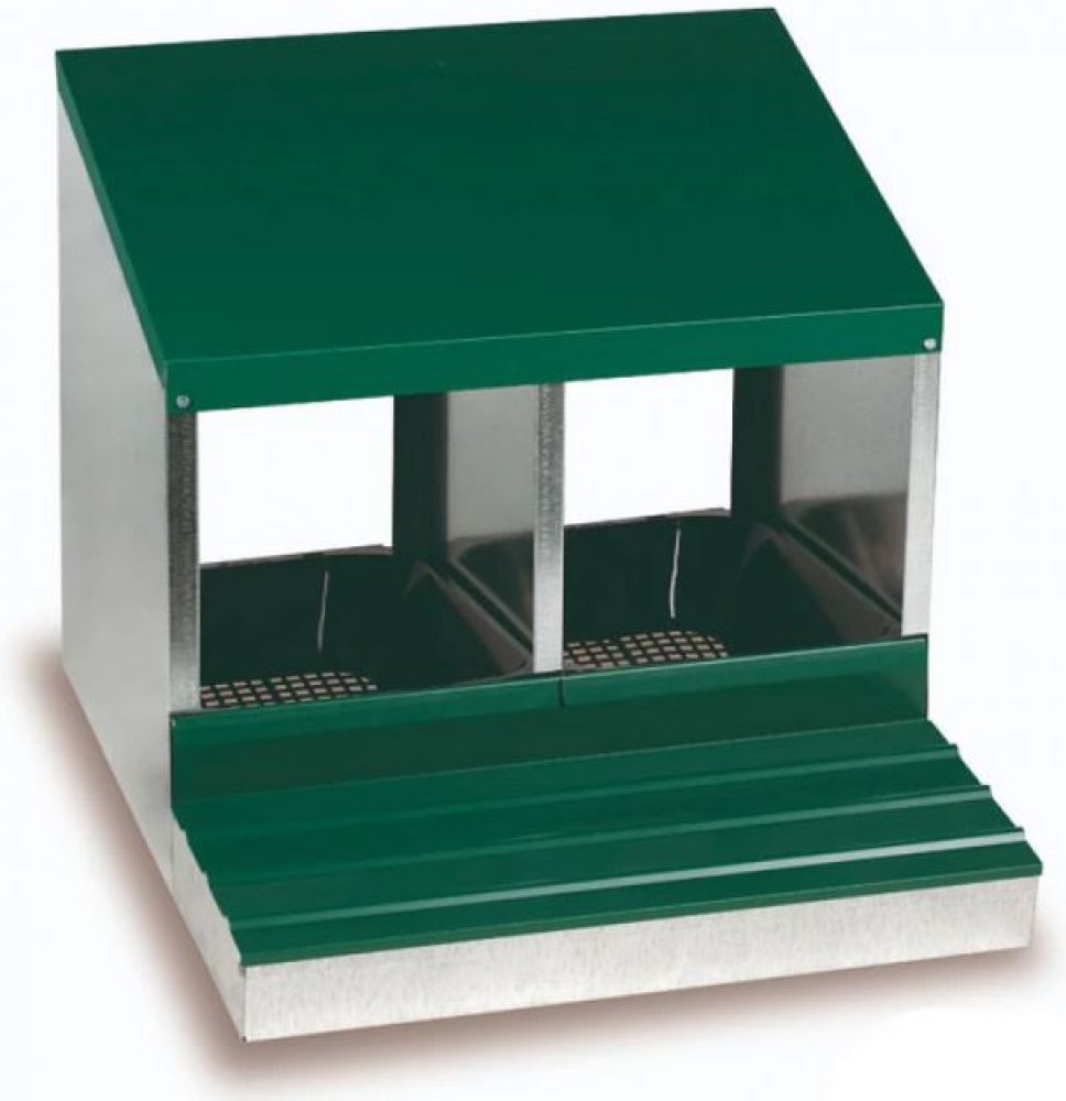 Pozinkované snáškové hnízdo pro dvě současně snášející nosnice. 2 snášková hnízda stačí pro hejno až 10 slepic. Dno je spádované - vejce se odkutálí do spodní části a je chráněné proti zašpinění.Materiál se snadno čistí. Snadná montáž a demontáž. Kvalitnější verze s kovovým snášedlem.
