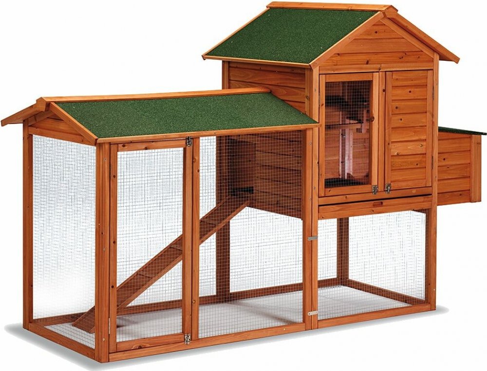 Kurník pro slepice, pro 6-8 nosnic, 2 vnější snášková hnízda, výsuvný trusník pro snadné čištění, rozměry: 2270x940x1510 mm. Pokud hledáte kvalitní dřevěný kurník pro 6 slepic, pak máme přesně to, co hledáte. Dvoupatrový kurník se dvěma vnějšími snáškovými hnízdy, které poskytnou zázemí a Vám možnost snadného sběru vajec. Slepice mají do kurníku pohodlný přístup přes otevřená dvířka a po nakloněné protiskluzové rampě. Kurník je umístněný ve vrchní části výběhu a tím se plocha výběhu maximalizuje. Zároveň odolné smrkové dřevo zajišťuje stabilitu a pevnost celého kurníku. Při čištění kurníku jistě oceníte vysouvatelný trusník, který se snadno čistí i díky svému kovovému povrchu, ten zamezuje vsakování tekutin.