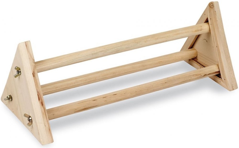 Dřevěné bidlo, pro slepice a kuřata, 3 kulaté tyčky k sezení, uchycení přes křídlové matky, rozměry 43x15,7x15 cm.