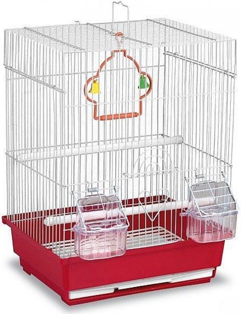 Má přední dvířka pro snadný přístup a je vybavena 2 krmítky, bidýlkami a houpačkou s rolničkami.