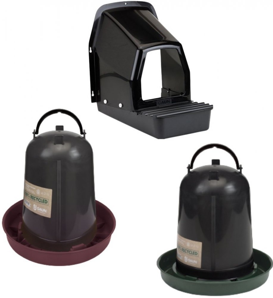 Startovací sada pro chov drůbeže z recyklovaného plastu obsahuje: