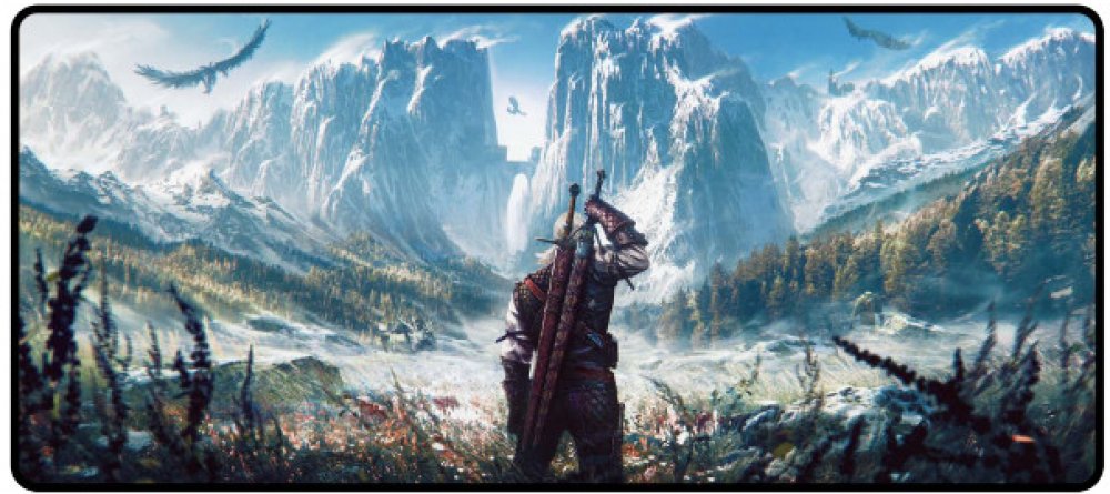 Podložka pod myš a klávesnici s grafikou severského ostrovního království Skellige z oblíbené RPG videohry Zaklínač 3: Divoký hon (The Witcher 3: Wild Hunt). Spodní část podložky je vybavena povrchem proti skluzu.