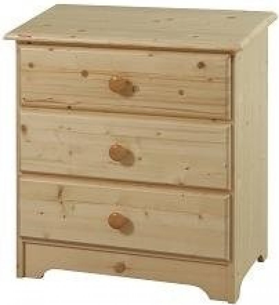 Dřevěná komoda III. Gazel Komoda z masivu, rozměr: 65×40×70 cm. Klasická dřevěná komoda se třemi zásuvkami vhodná do ložnice i dětského pokoje. Český výrobek. Záda komody – sololak. Oblíbená, kvalitní, klasická komoda ze smrkového masivního dřeva tloušťky 18 mm.