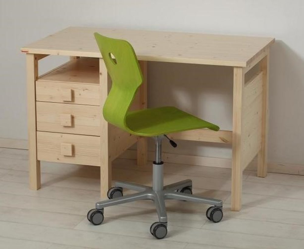 Psací stůl z masivu v novém designu má tři zásuvky a velkou pracovní desku, to je ideální volba do dětského i studentského pokoje.