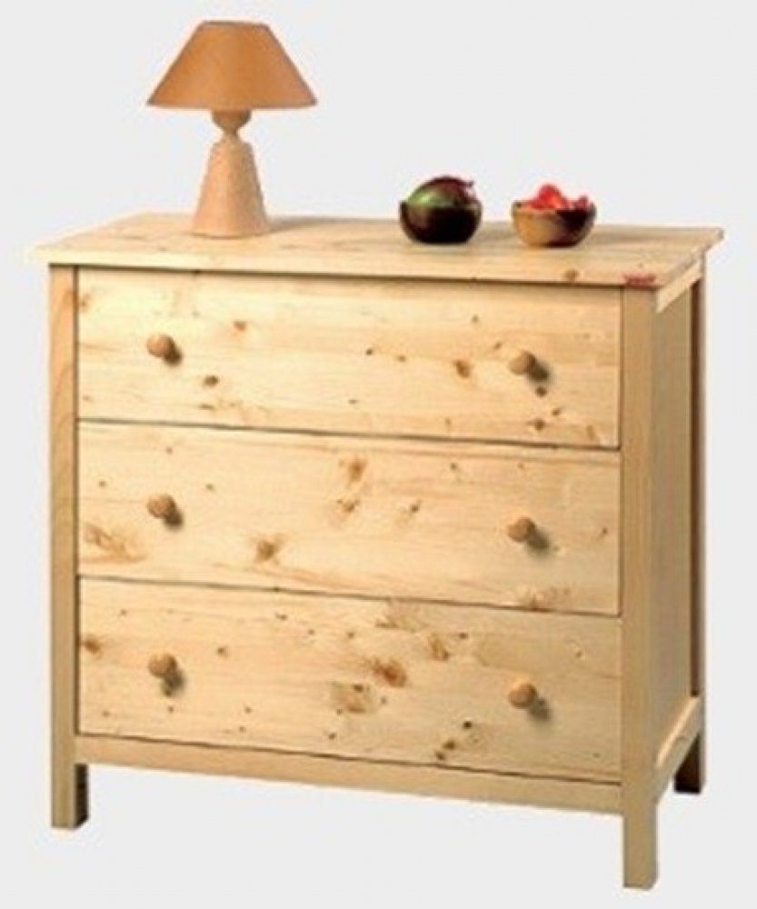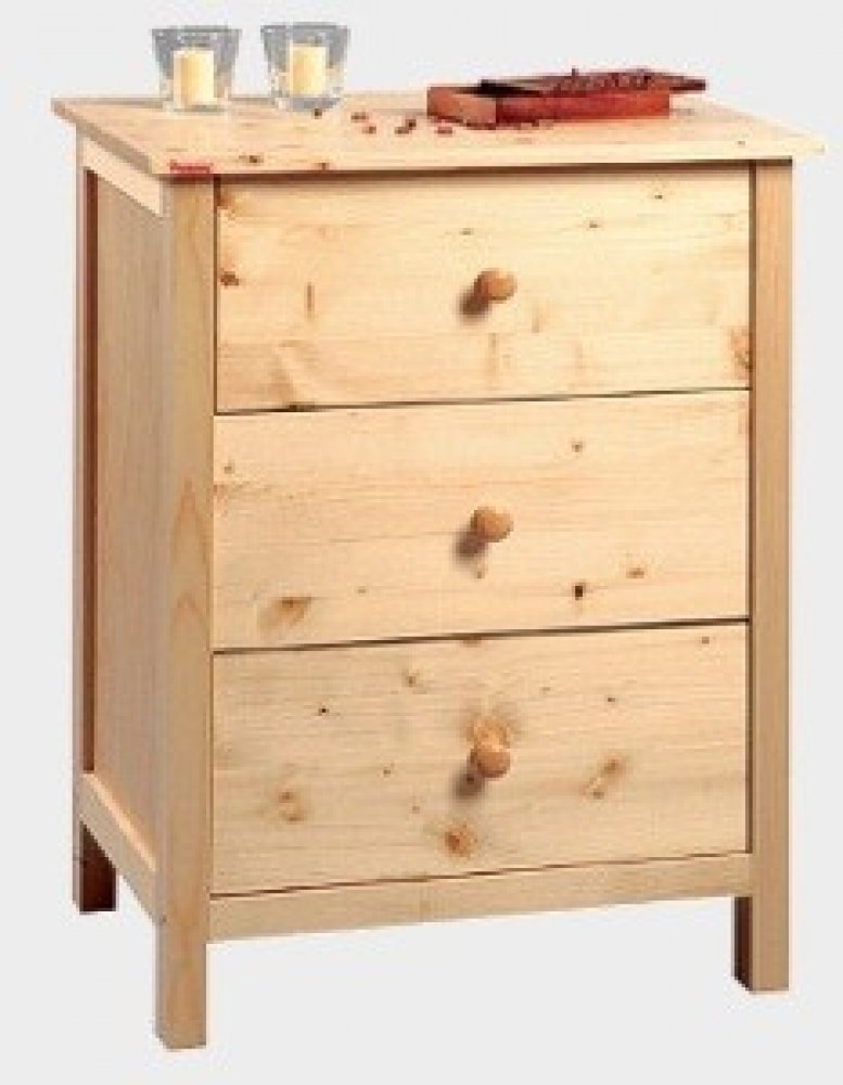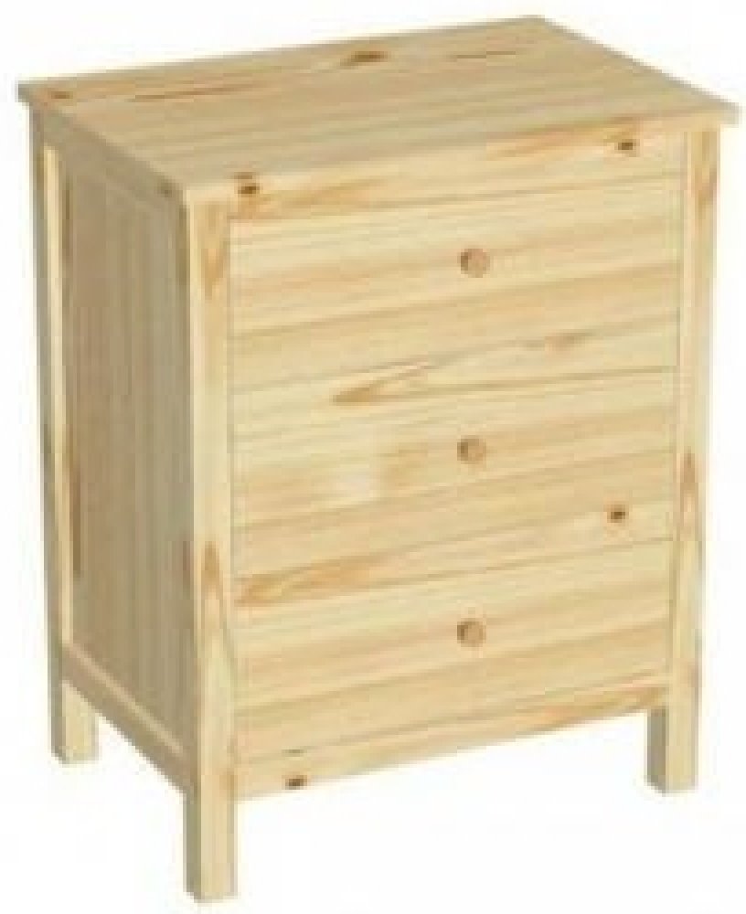 Komoda III. velká z kolekce Natur se třemi šuplíky je vyrobena ze smrkového masivu. Boky komody jsou ze smrkové překližky. Ošetřena bezbarvým lakem.