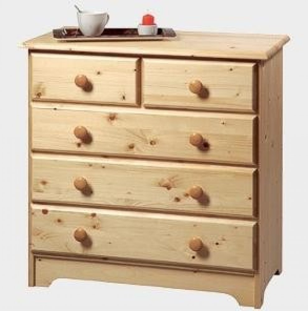 Komoda V. z řady komod GAZEL s pěti zásuvkami.Tři velké zásuvky a dvě menší Vám umožní uložit vše potřebné. Je vyrobená z masivního smrkového dřeva.Surovinou pro výrobu nábytku GAZEL je kvalitní, dobře vysušené smrkové a bukové dřevo domácí provedience, které neobsahuje žádné nevhodné substance jako jsou form...