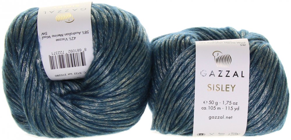 Příze Gazzal Sisley spojuje prémiovou australskou merino vlnu Superwash s jemnou viskózou, díky čemuž je výjimečně měkká, hřejivá a hladká. Elegantní kovový nádech tónů dodává hotovým výrobkům luxusní a moderní vzhled. Sisley se skvěle zpracovává, krásně klouže na jehlicích i háčku a poskytuje rovnoměrný úplet.