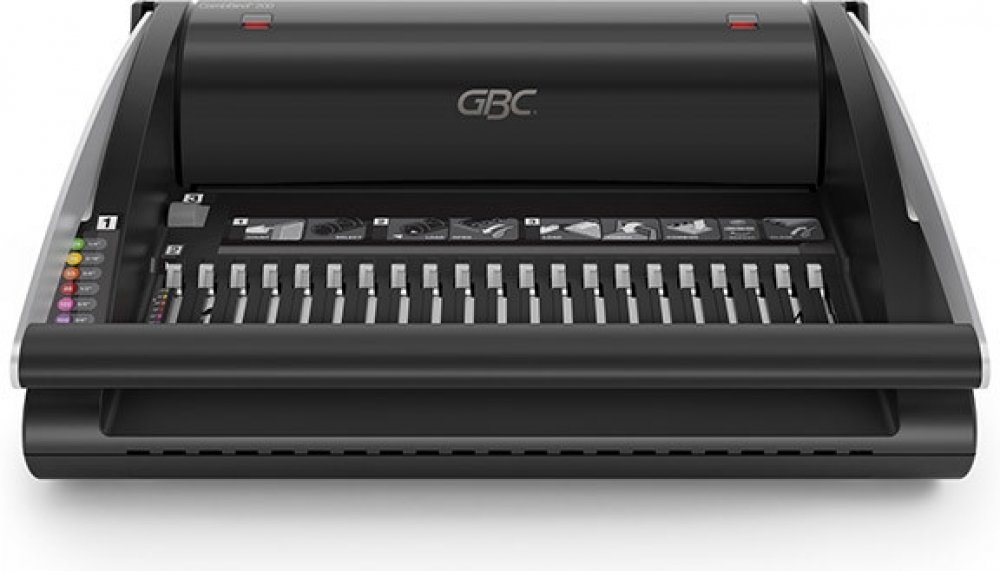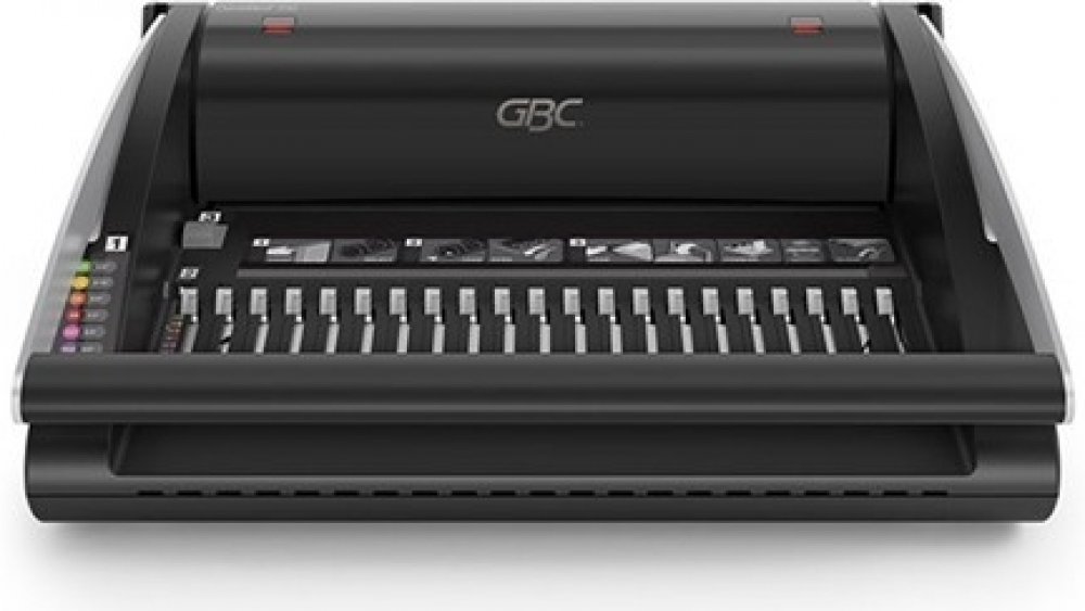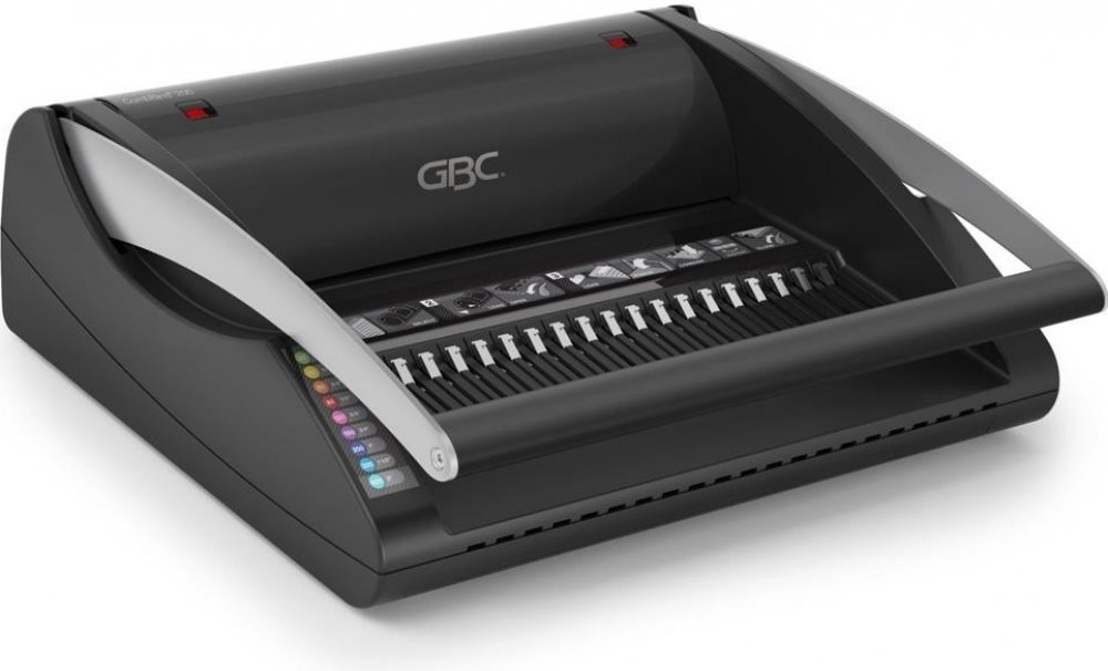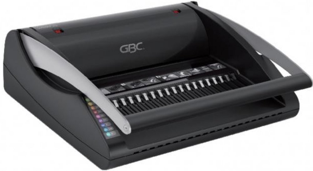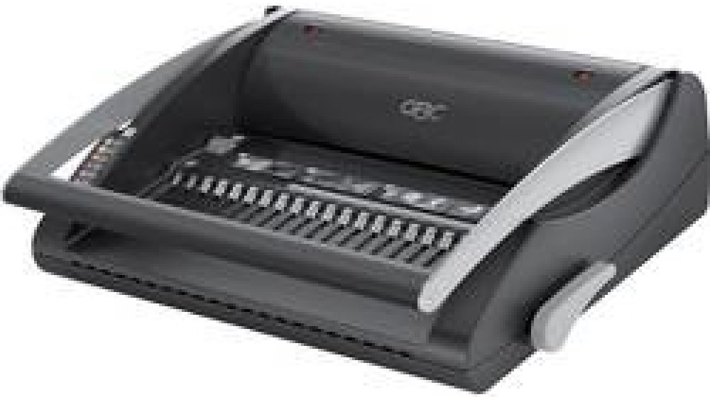 Vazač s elektrickým děrováním pro kompletaci dokumentů s použitím plastových hřbetů. Sváže 330 listů, děruje až 15 listů papíru 80 g/m². Rozteč 9/16" (21 otvorů na A4). Masivní konstrukce. Jednoduchá obsluha. Pro formát A4, A3. Samostatná páka pro obsluhu vázání. Měrka pro volbu průměru hřbetu. Přísavky na spodní straně pro lepší stabilitu. LED diodové indikátory zapnutí, naplnění odpadní nádoby, ucpání. Funkce zpětného chodu při ucpání.