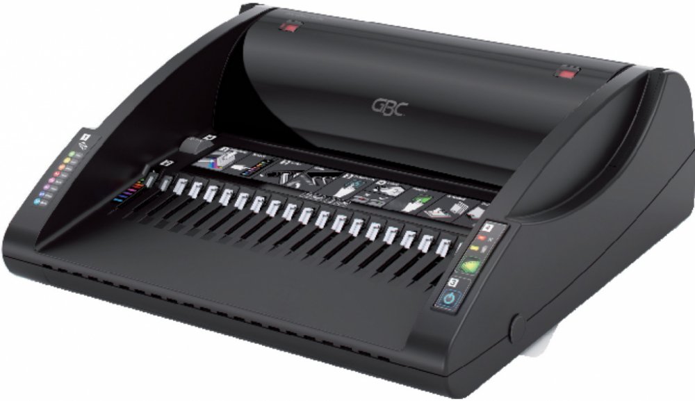 Vazač s elektrickým děrováním pro kompletaci dokumentů s použitím plastových hřbetů. Sváže 330 listů, děruje až 15 listů papíru 80 g/m². Rozteč 9/16" (21 otvorů na A4). Masivní konstrukce. Jednoduchá obsluha. Pro formát A4, A3. Samostatná páka pro obsluhu vázání. Měrka pro volbu průměru hřbetu. Přísavky na spodní straně pro lepší stabilitu. LED diodové indikátory zapnutí, naplnění odpadní nádoby, ...