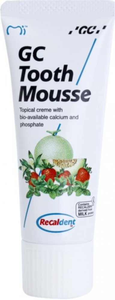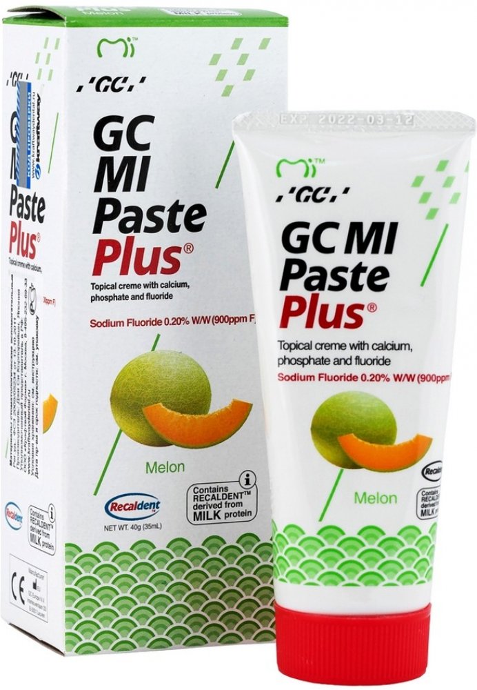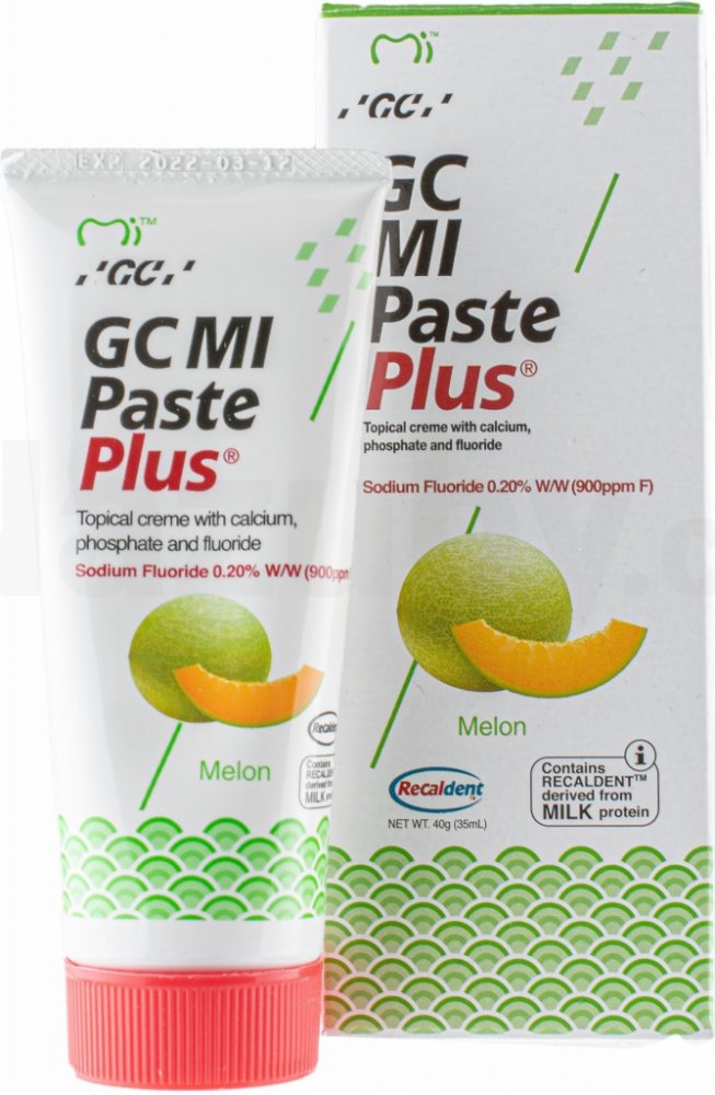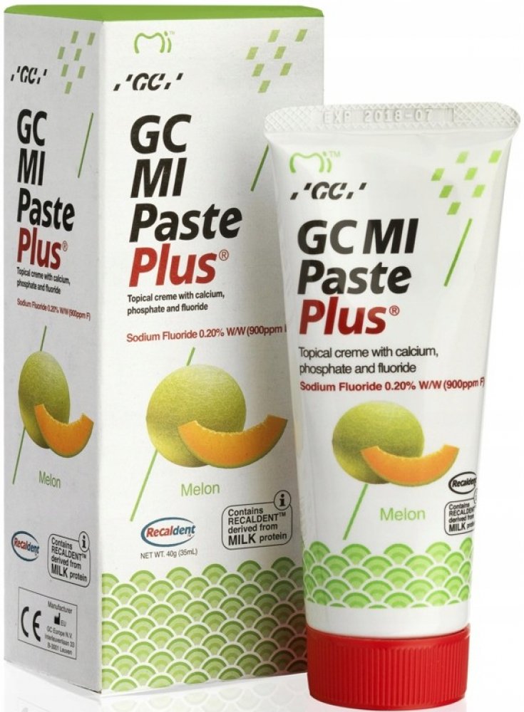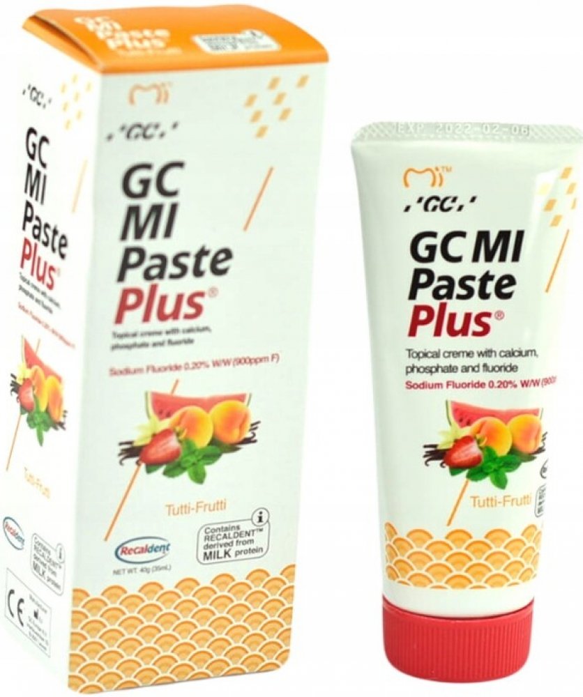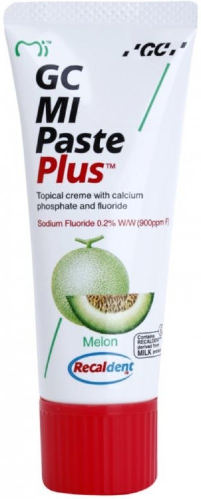 GC MI Paste Plus je topický dentální krém s obsahem vápníku, fosfátu a fluoridů. Používá se ke zvýšení pevnosti, odolnosti a zdraví zubů. Vhodné pro pacienty s rozsáhlým zubním kazem a zvýšenou abrazí zubů. Dodává zubům potřebné látky k remineralizaci povrchu zubů. Je velice účinný a zubaři také hojně doporučovaný, protože obsahuje RECALDENT™ (CPP-ACP), speciální protein získávaný z mléka, který pomáhá při nahrazování ztracených minerálů v zubech, takže jim zabraňuje v erozi a následném rozpadu.