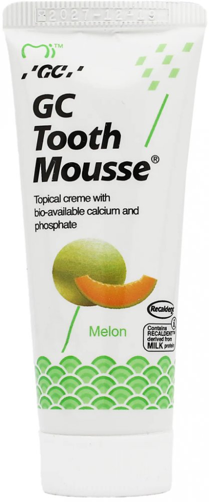 Bioaktivní dentální krém GC Tooth Mousse je obohacen o derivát mléčného proteinu Recaldent™, který slouží k dodání vápníku a fosfátu na potřebná místa na zubech. Krém zároveň pomáhá obnovit minerální rovnováhu v ústní dutině, neutralizovat kyseliny obsažené v plaku a chránit zuby před vznikem kazu. Snižuje přecitlivělost zubů uzavřením dentálních kanálků. Je ideální před a po profesionálním bělení...