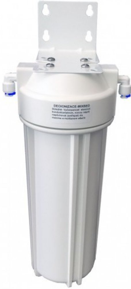 Znovu-plnitelný inline filtr "mixbed" (směs anexu a katexu), který slouží jako dočistující stupeň za výstup reverzní osmózy při požadavku na dosažení ultračisté vody.