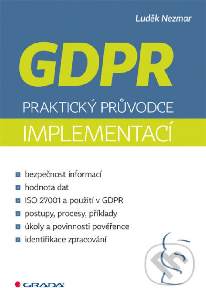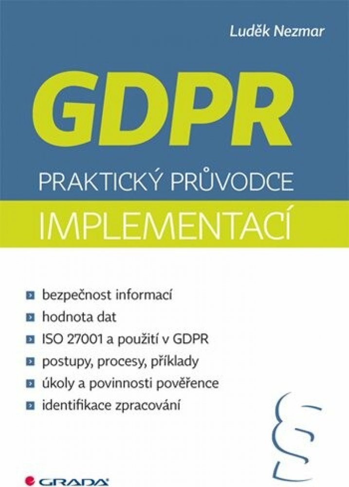 Kniha provede procesem zavedení povinného nařízení EU o ochraně osobních údajů známého pod názvem GDPR - General Data Protection Regulation. Povinnost dopadne na všechny subjekty, které zpracovávají osobní údaje občanů EU - tedy na valnou většinu firem, organizací, obcí, škol nebo státních institucí. Smyslem nařízení GDPR je ochránit data běžných občanů, která mohou být jednoduše zneužita. Norma zakládá firmám a organizacím mnoho povinností v oblasti práva, managementu, nastavení a zabezpečení struktury informačních technologií. Naopak jasně definuje práva lidí vůči těm, kteří osobní data sbírají a využívají jich ke své činnosti.