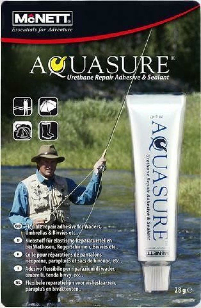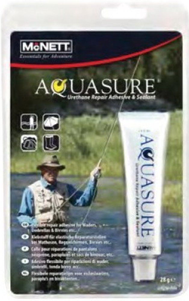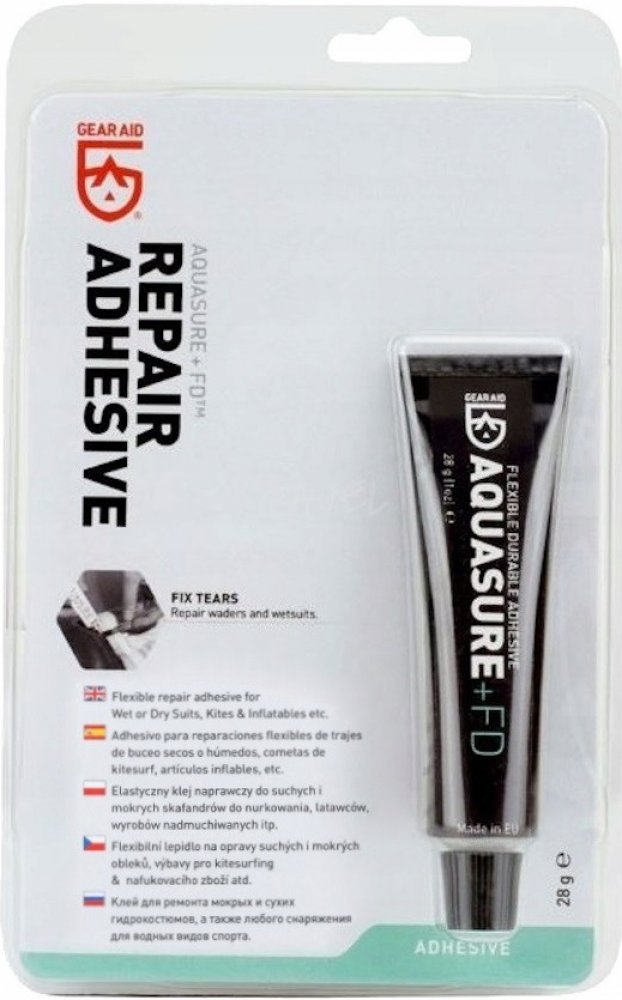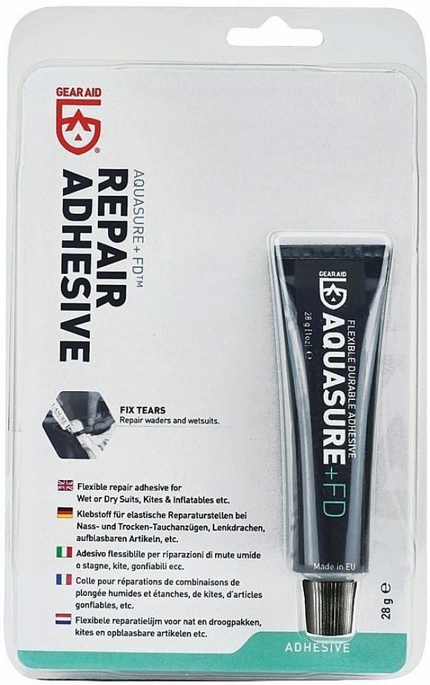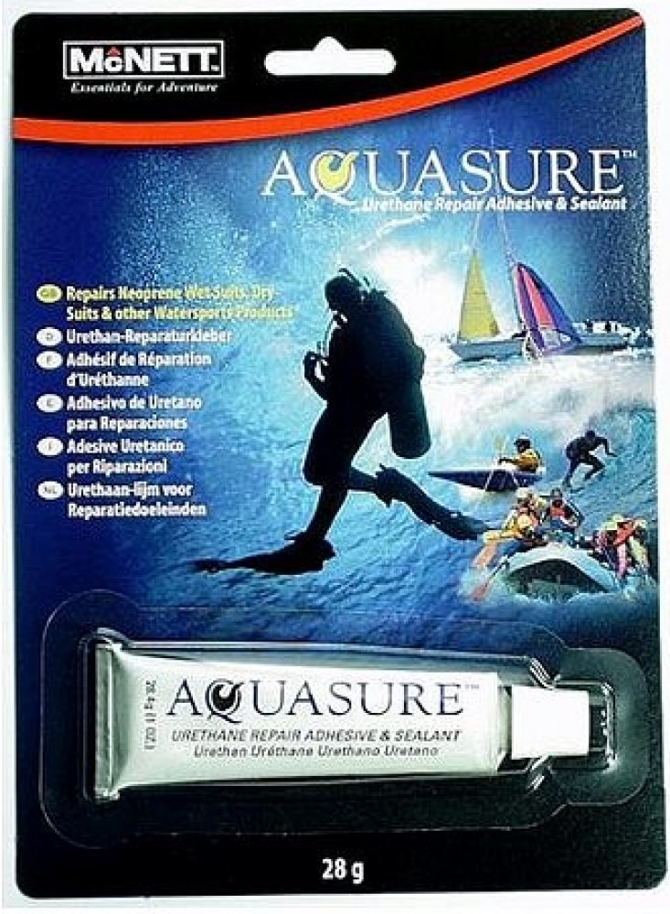 AQUASURE+FD je lepidlo/tmel na bázi polyuretanu pro opravu středně těžkých zátěrovaných tkanin (Cordury) a neoprenu.