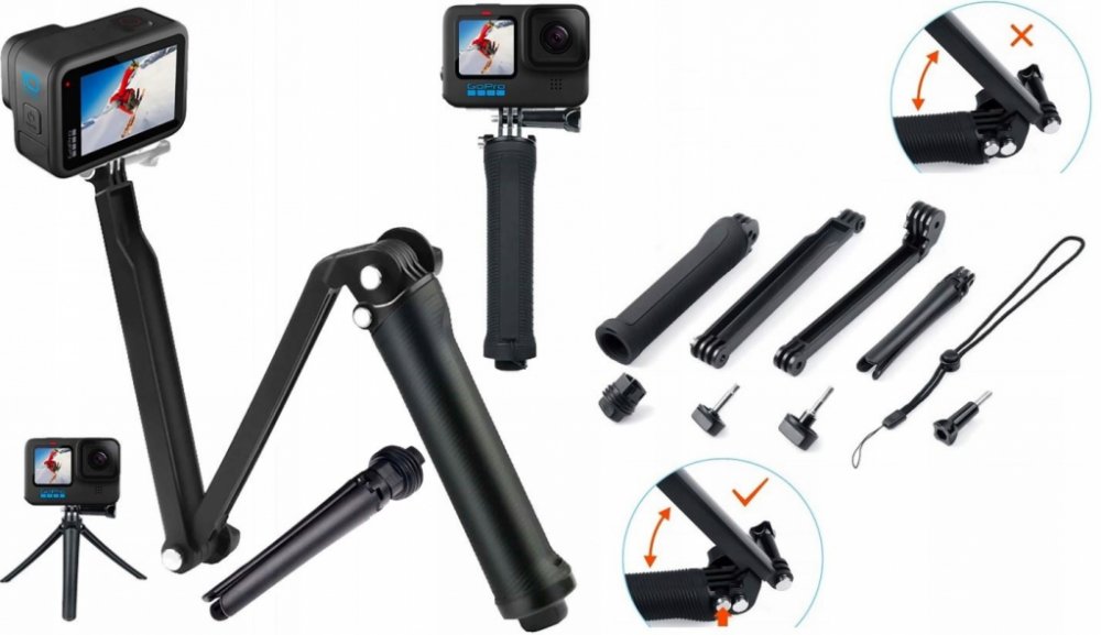Selfie tyč 3WAY | Stativ + Rameno + Držák pro GoPro 13–4