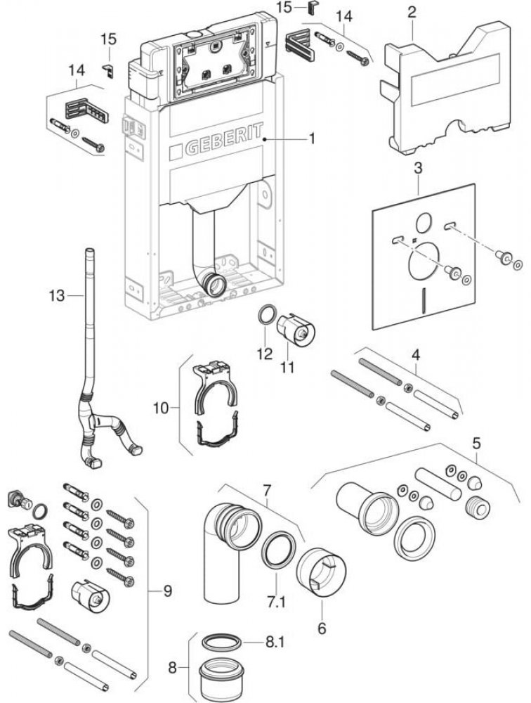Předstěnový splachovací systém Geberit KOMBIFIX 110.367.00.5 s připojením na externí odsávání zápachu s odvodem vzduchu. Kombifix je jednoduchý a cenově dostupný montážní prvek určený pro instalaci s mokrými procesy do masivních zděných konstrukcí nebo pro předstěnovou instalaci (před zděnou nebo betonovou stěnu) s předezděním.