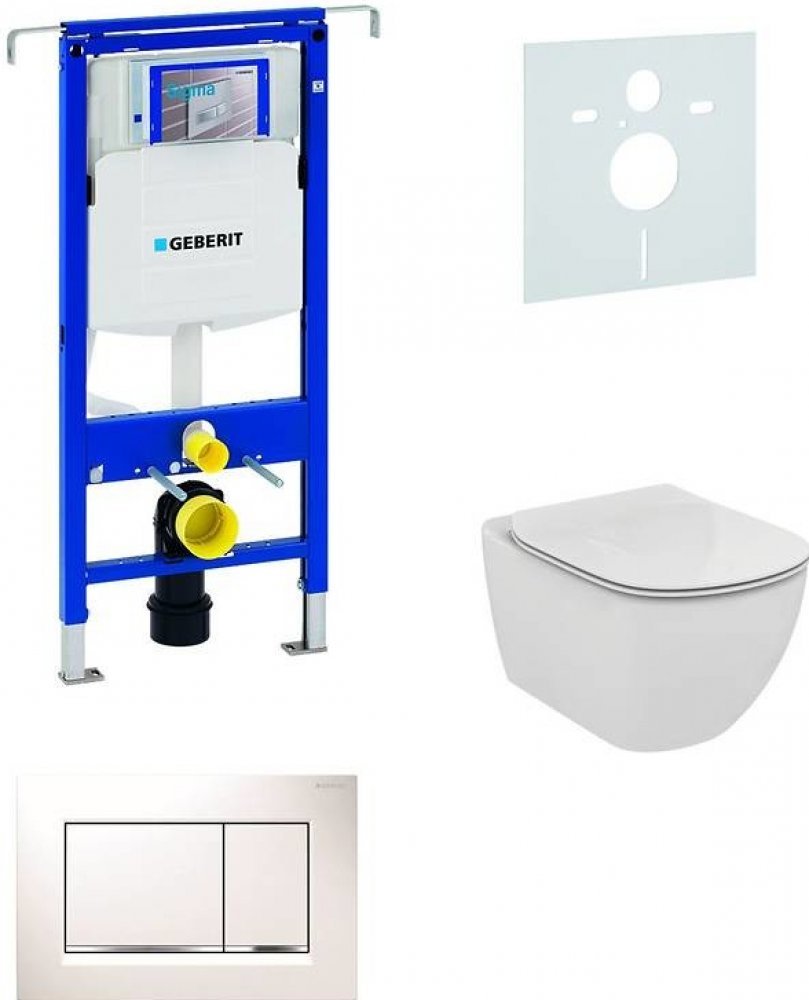 Závěsný set WC - sada obsahuje závěsné WC Ideal Standard TESI, sedátko Ideal Standard TESI, modul Geberit Duofix Speciál, tlačítko Sigma 30 (bílá/chrom lesk) a zvukoizolační vložku