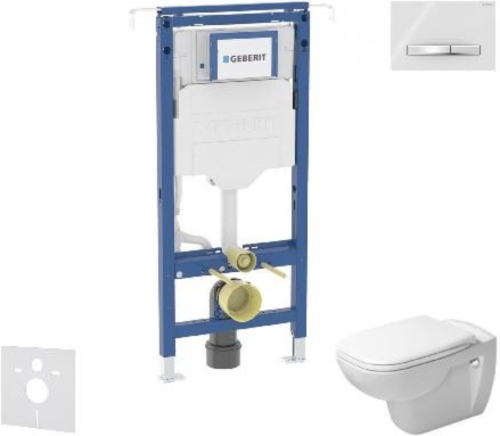 Sada předstěnové instalace, klozetu, WC sedátka a ovládacího tlačítka Obsahuje Předstěnový instalační modul Geberit Duofix, se splachovací nádržkou pod omítku Sigma 12 cm Soupravu pro tlumení hluku Závěsný keramický klozet Duravit D-Code, včetně WC sedátka Rimless bezokrajové provedení splachování SoftClose pozvolné, tiché sklápění 2-činné ovládací tlačítko Geberit Sigma50, alpská bílá Špičkový vý...