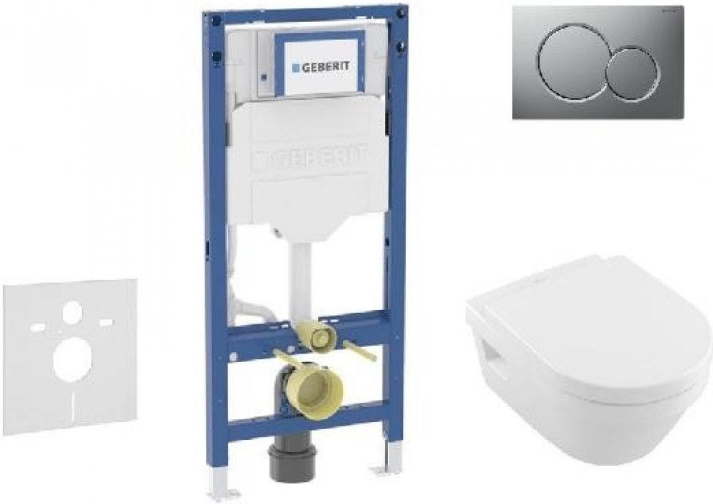 Set předstěnové instalace, klozetu a sedátka Villeroy & Boch, tlačítka Sigma01, matný chrom