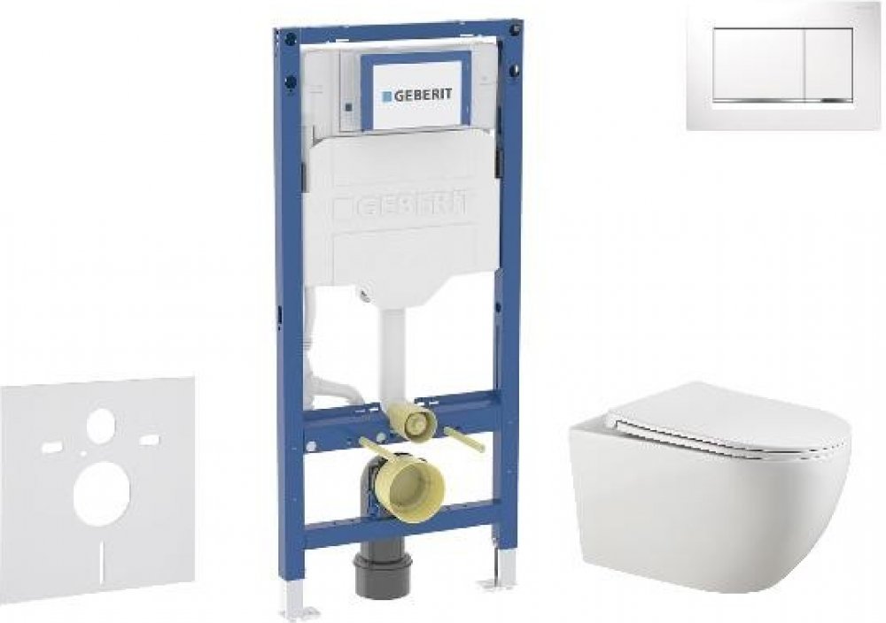 Set obsahuje předstěnový instalační modul Geberit Duofix se splachovací nádržkou pod omítku keramický závěsný klozet kielle Gaia se sedátkem SoftClose ovládací tlačítko Geberit Sigma30 pro 2-činné splachování soupravu pro tlumení hluku Předstěnový instalační modul Duofix pro závěsné WC se splachovací nádržkou Sigma 12 cm pro konstrukce prováděné suchým procesem k montáži do předstěnových instalac...