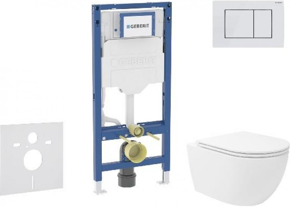 Set obsahuje předstěnový instalační modul Geberit Duofix se splachovací nádržkou pod omítku keramický závěsný klozet kielle Oudee se sedátkem SoftClose ovládací tlačítko Geberit Sigma30 pro 2-činné splachování soupravu pro tlumení hluku Předstěnový instalační modul Duofix pro závěsné WC se splachovací nádržkou Sigma 12 cm pro konstrukce prováděné suchým procesem k montáži do předstěnových instala...