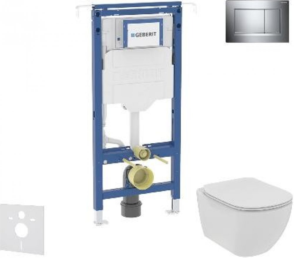 Set předstěnové instalace, klozetu a sedátka Ideal Standard Tesi, tlačítka Sigma20, chrom Obsahuje Předstěnový instalační prvek Geberit Duofix, se splachovací nádržkou pod omítku, k instalaci mezi boční stěny Soupravu pro tlumení hluku Keramický závěsný klozet Ideal Standard Tesi RimLS+ technologie bezokrajového splachování WC sedátko Ideal Standard Tesi SoftClose pozvolné, tiché sklápění 2-činné ...