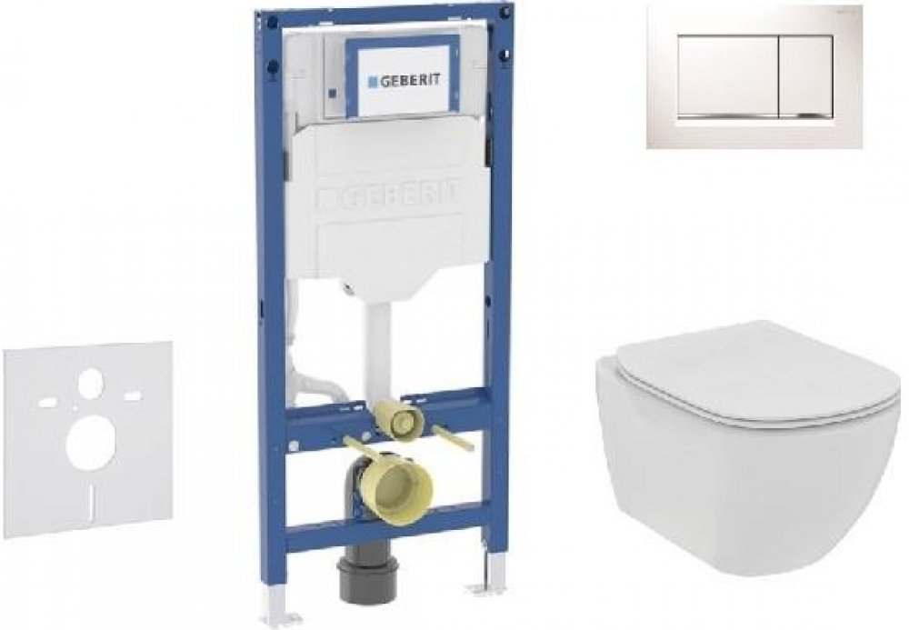 Set předstěnové instalace, klozetu a sedátka Ideal Standard Tesi, tlačítka Sigma30, bílá/chrom Obsahuje předstěnový instalační prvek Geberit Duofix (111.300.00.6), se splachovací nádržkou pod omítku soupravu pro tlumení hluku keramický závěsný klozet Ideal Standard Tesi RimLS+ technologie bezokrajového splachování WC sedátko Ideal Standard Tesi, SoftClose pozvolné tiché sklápění 2-činné ovládací t...