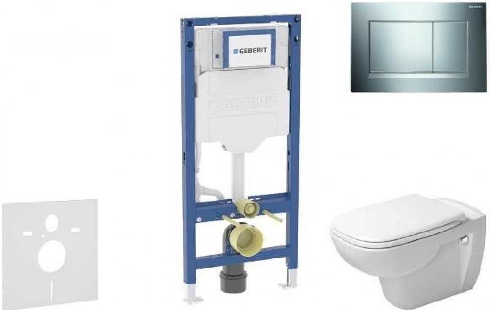Sada předstěnové instalace, klozetu, WC sedátka a ovládacího tlačítka Obsahuje předstěnový instalační modul Geberit Duofix (111.300.00.6), se splachovací nádržkou pod omítku Sigma 12 cm soupravu pro tlumení hluku (SP 156SET) závěsný keramický klozet Duravit D-Code, včetně WC sedátka Rimless bezokrajové provedení splachování SoftClose pozvolné, tiché sklápění 2-činné ovládací tlačítko Geberit Sigma...