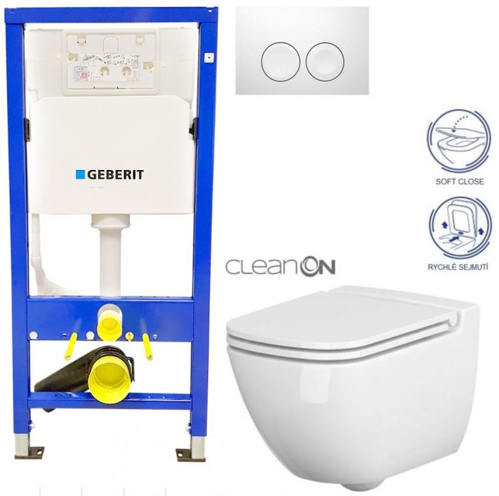 Geberit Duofix tlačítko DELTA21 bílé WC CERSANIT CASPIA CLEANON + SEDÁTKO 458.103.00.1 21BI CP1