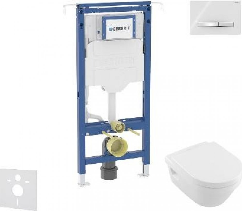 Set předstěnové instalace, klozetu a sedátka Villeroy & Boch, tlačítka Sigma50, alpská bílá Obsahuje Předstěnový instalační prvek Geberit Duofix, se splachovací nádržkou pod omítku, k instalaci mezi boční stěny Soupravu pro tlumení hluku Keramický závěsný klozet Villeroy & Boch Omnia Architectura s technologií DirectFlush, AquaReduct, CeramicPlus Duroplastové WC sedátko Villeroy & Boch Omnia Archi...