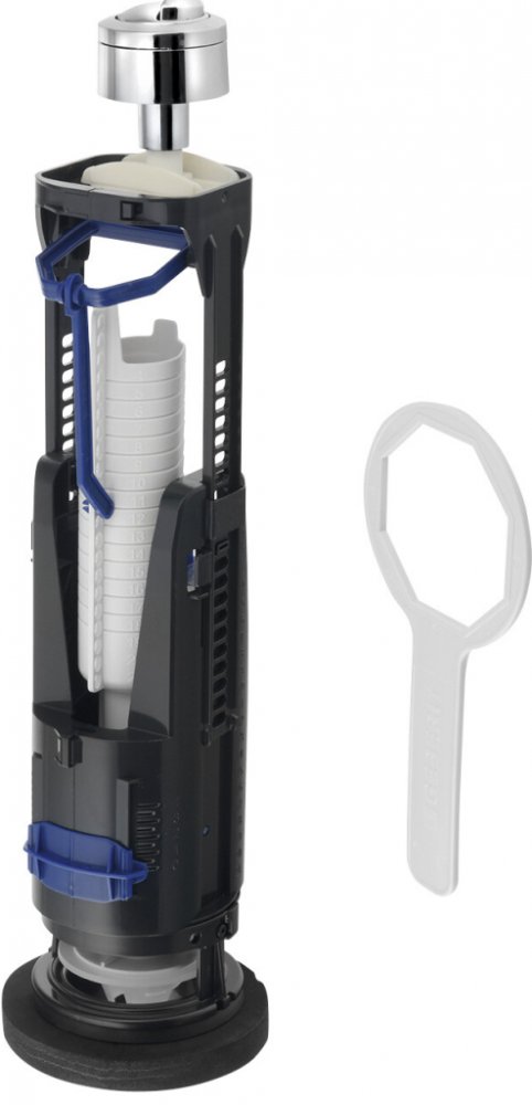 - 2 množství splachování - Výškově nastavitelný - Malé a velké splachovací množství (Nastavitelné podle množství vody ve splachovací nádržce) - Přepadová trubka zkrátitelná - S upevněním víka