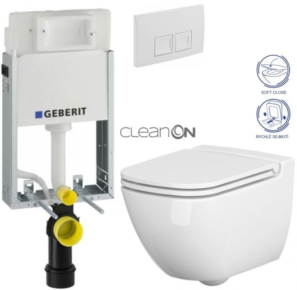 Geberit KOMBIFIX Basic tlačítko DELTA 50 Bílé WC CERSANIT CASPIA + SEDÁTKO 110.100.00.1 50BI CP1