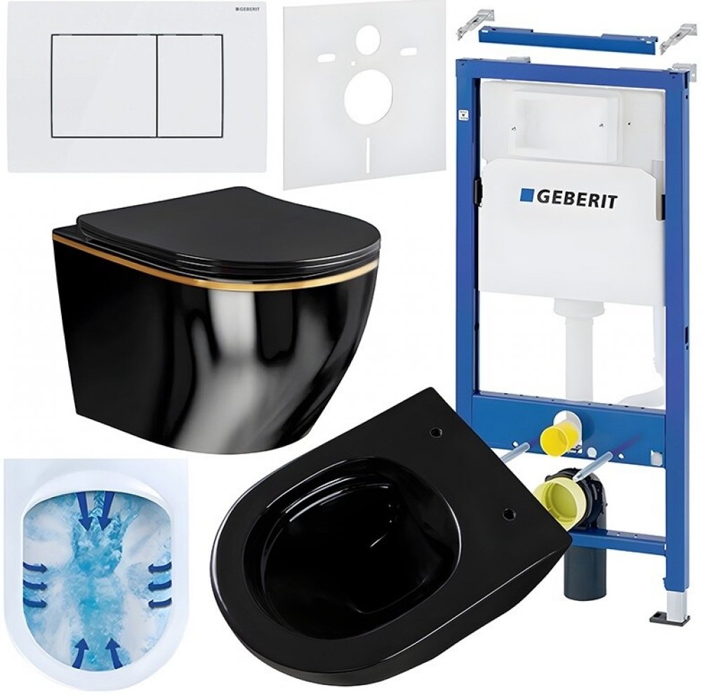 Podomítkový WC set Geberit DuoFix s WC mísou MU-BL-GL-RIM-03 je kompletní řešení pro moderní koupelny, které spojuje elegantní design, funkčnost a vysokou odolnost. Tento set zahrnuje podomítkový instalační rám, závěsnou bezokrajovou WC mísu, zvukoizolační vložku a dvoudílné ovládací tlačítko. Všechny komponenty jsou součástí balení, takže není třeba nic dokupovat zvlášť.