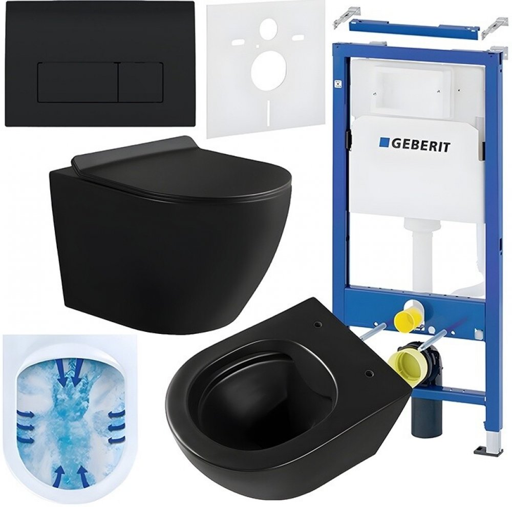 Podomítkový WC set Geberit DuoFix s WC mísou SL-MTB-RIM-01 je kompletní řešení pro moderní koupelny, které spojuje elegantní design, funkčnost a vysokou odolnost. Tento set zahrnuje podomítkový instalační rám, závěsnou bezokrajovou WC mísu, zvukoizolační vložku a dvoudílné ovládací tlačítko. Všechny komponenty jsou součástí balení, takže není třeba nic dokupovat zvlášť.